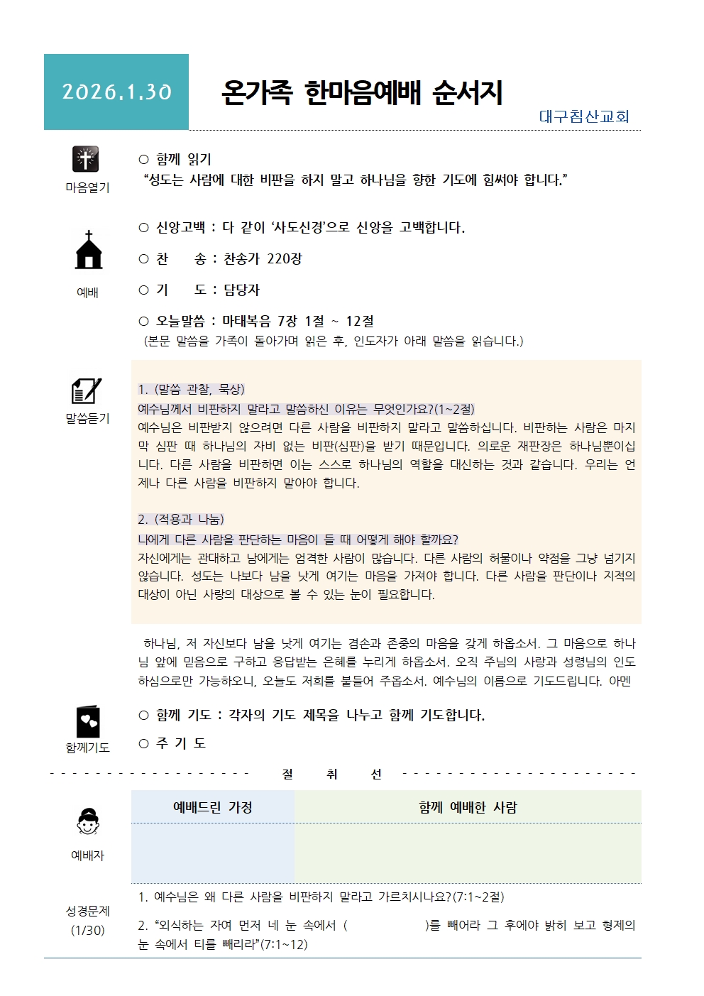 2026³â 1¿ù 30ÀÏ ¿Â°¡Á· ÇѸ¶À½ ¿¹¹è